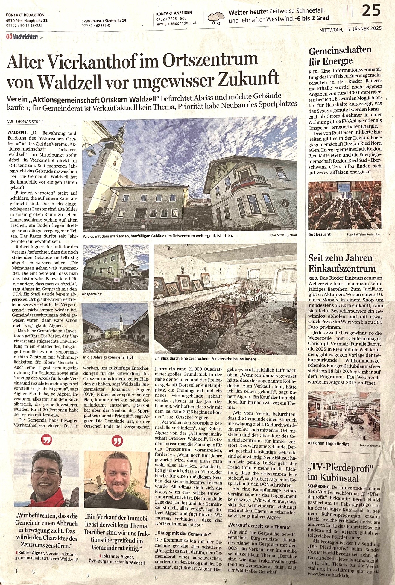Am 15.Jan 2025 haben die OÖ Nachrichten einen Beitrag über die Vereinsgründung und Ziele gedruckt. Link zum Artikel.